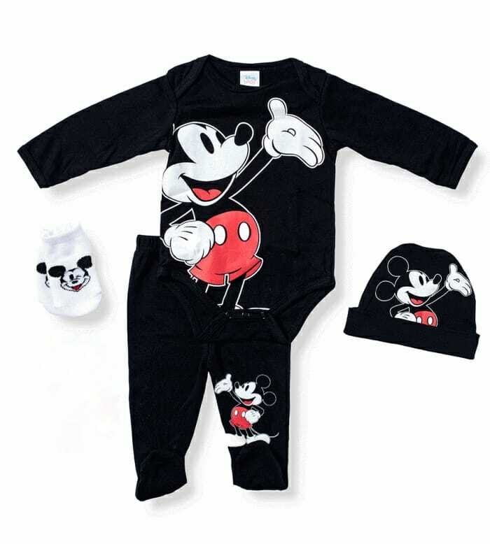 סט חליפה הכולל: בגד גוף , מכנסי רגלית , כובע, וזוג גרביים.