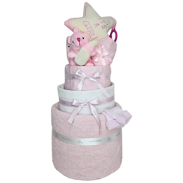 מתנה ליולדת ולתינוק מרשימה מאוד המכילה פריטים ראשוניים בעיצוב עוגת שלוש קומות
