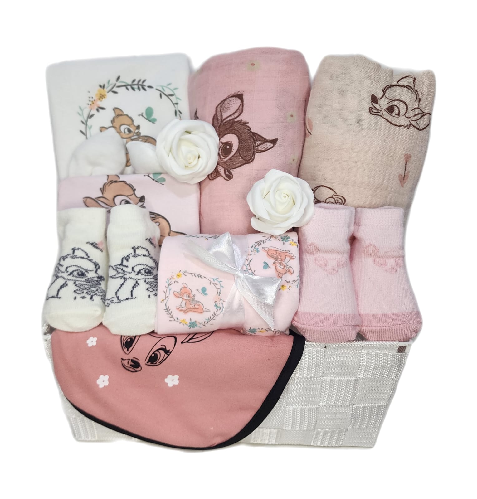 מארז במבי מהמם עם מוצרים מעולים לתינוקת מבית דיסני , המארז מכיל :
