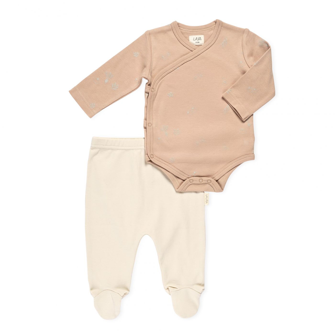 סט בגד גוף ורגליות פרחים צורני חום