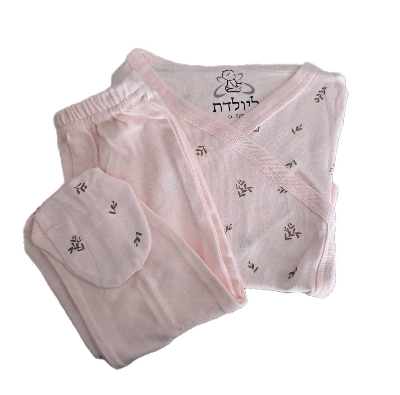 חליפה לתינוקת - עלים ורוד