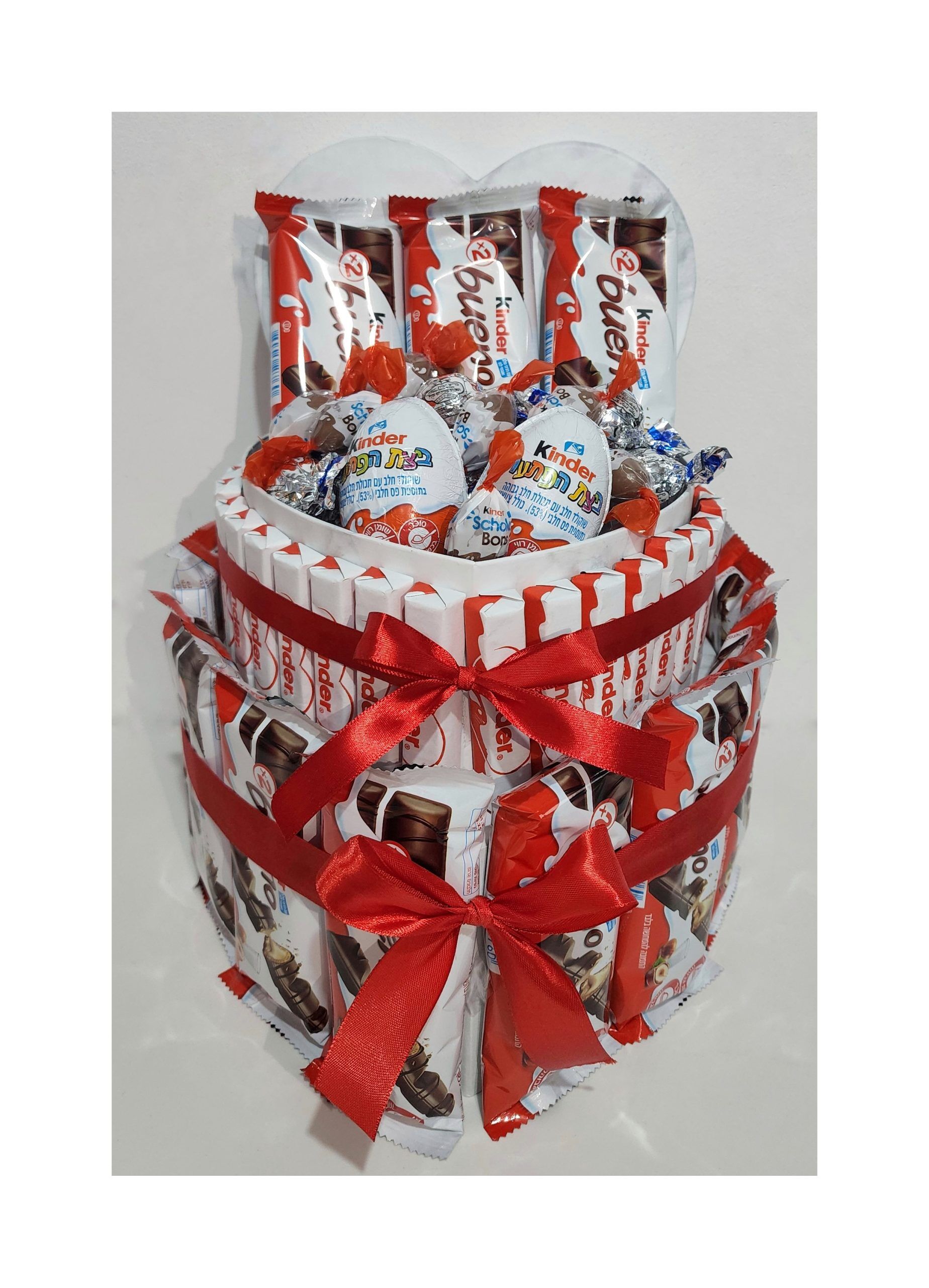 שתי קומות של מארז מתוק מפוצץ בשוקולדים ,המארז מכיל :