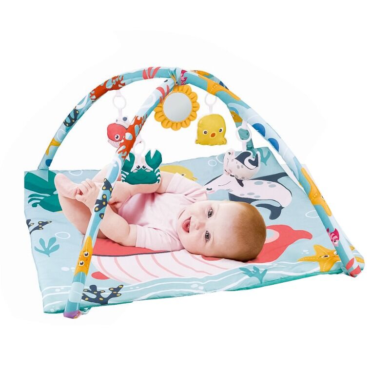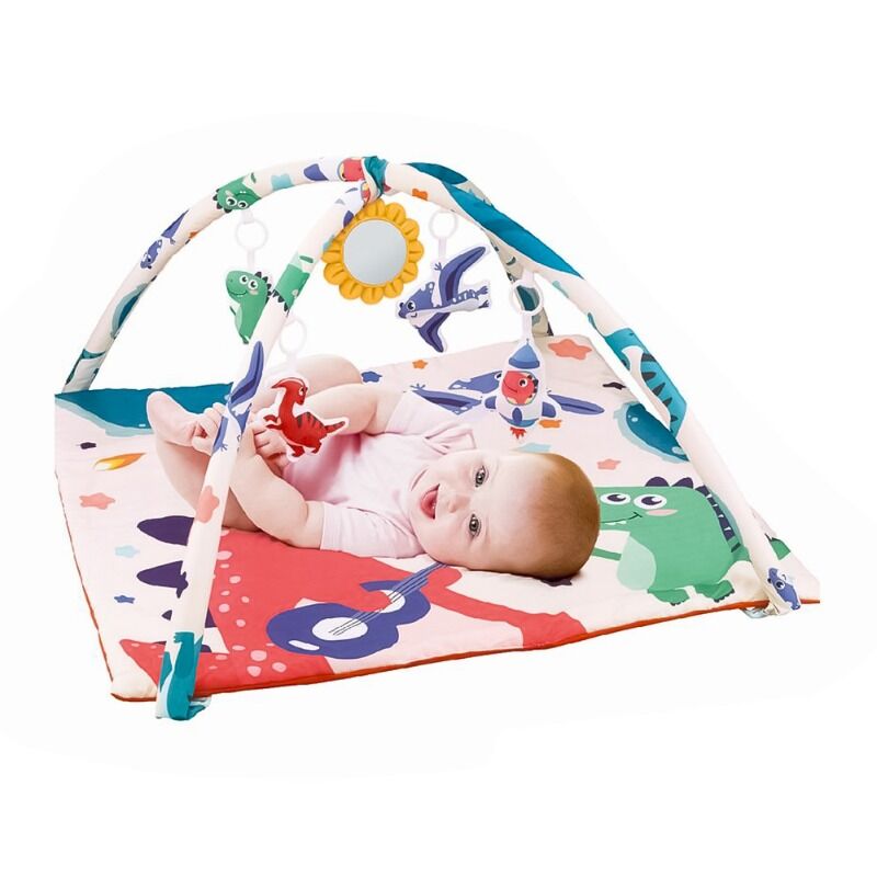 צעצועים תלויים בשביל לפתות את התינוק להגיע ולחזק מיומנויות מוטוריות.