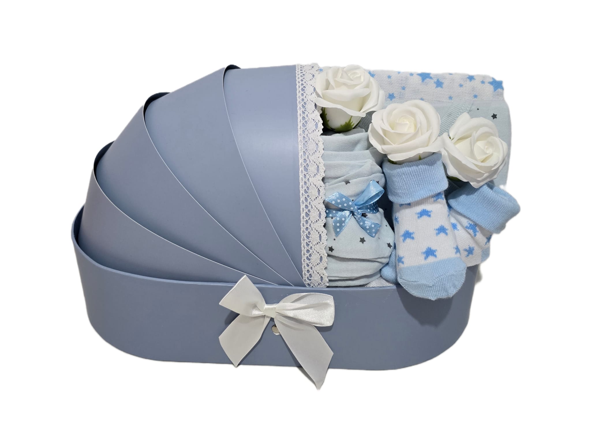 מתנה מקורית ללידת בן המכילה ביגוד ראשוני לתינוק