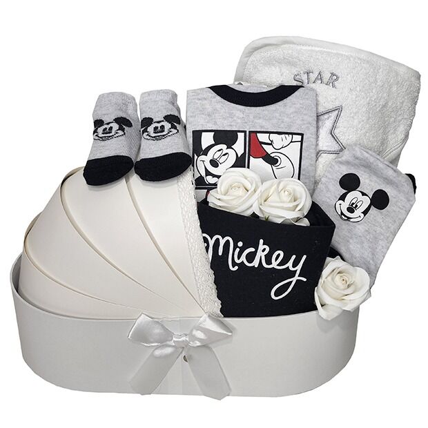 מתנה ליולדת בקופסת עריסה מיוחדת מלאה בפרטי לבוש מבית דיסני.