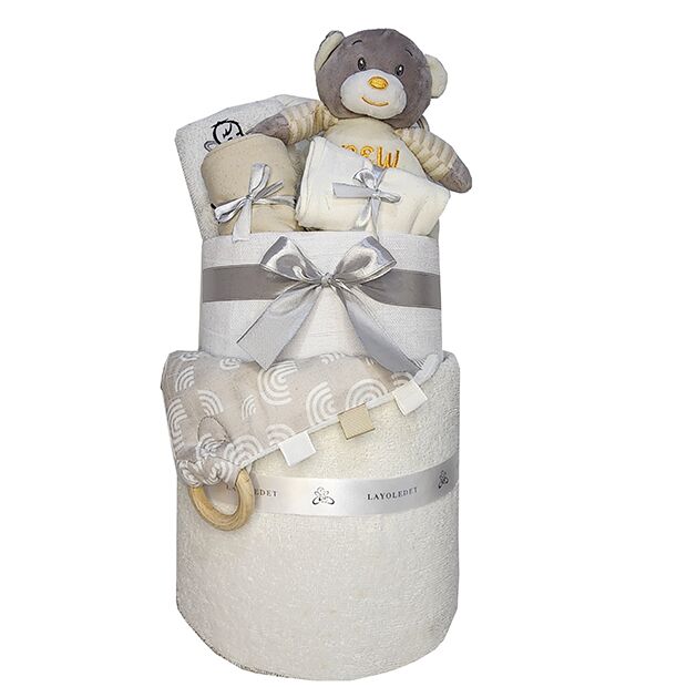 מתנה ליולדת המכילה פריטים איכותיים להולדת הבן/ת בצבעים רכים ועדינים