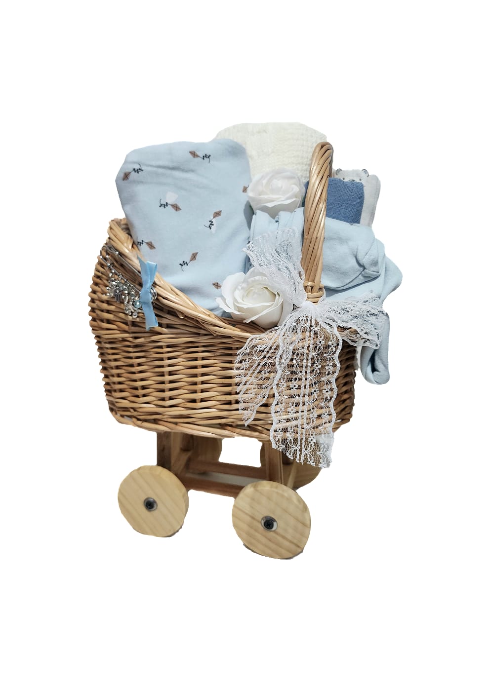 מארז מתנה ליולדת משולב המורכב ממוצרים לפינוק היולדת ופריטים ראשוניים לרך הקטן.