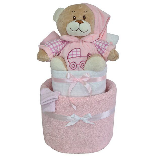 מתנת לידה גדולה ומרשימה המעוצבת כעוגת שתי קומות.