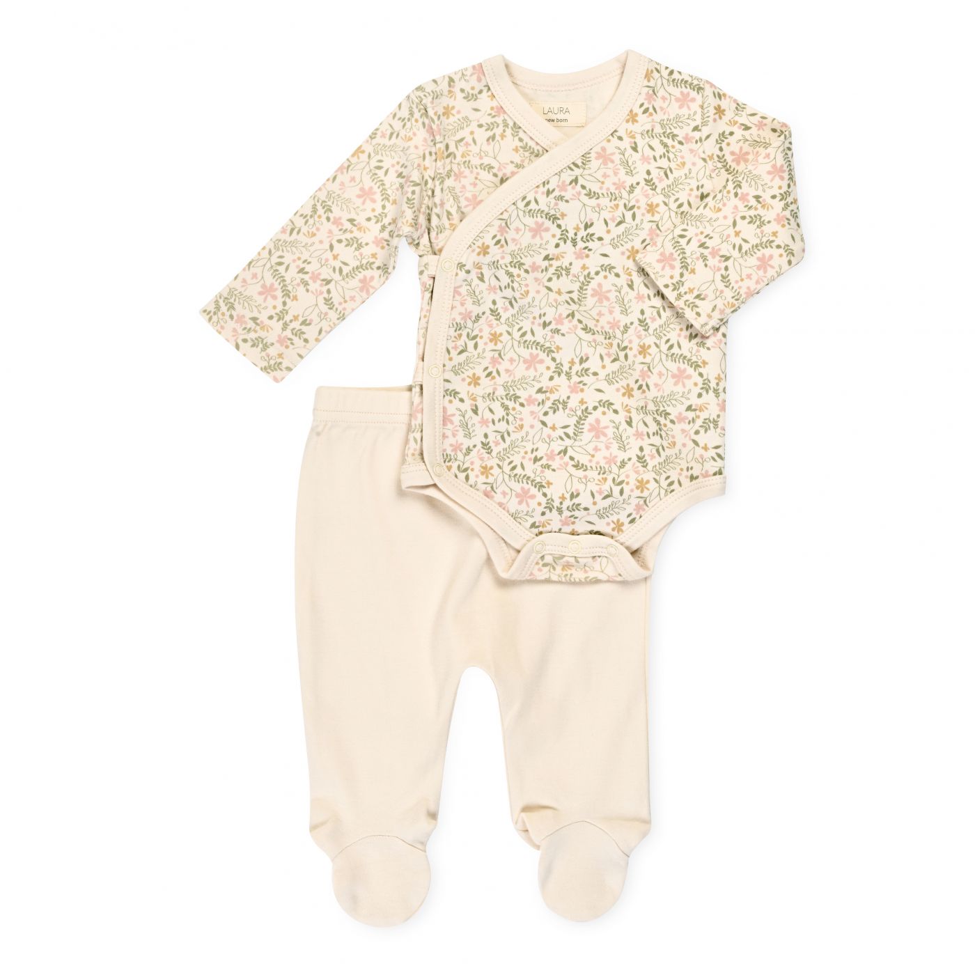 סט בגד גוף ורגליות - עלים ופרחים